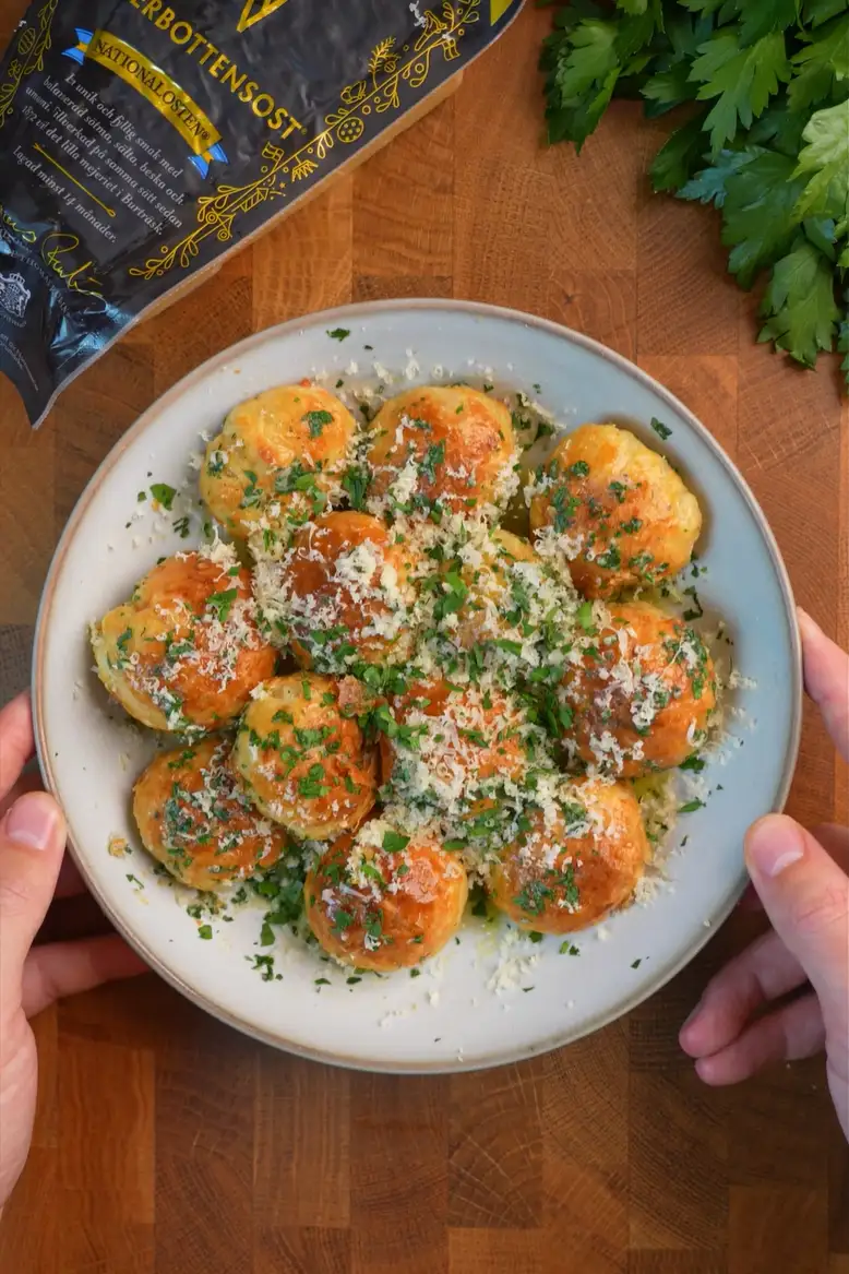 Krispigt, ostigt och helt oemotståndligt. Smördegsbollar fyllda med Västerbottensost och vitlökssmör. Receptet är skapat av ponnesmat i samarbete med oss.